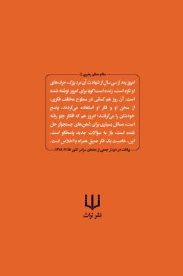 مقتل مطهرروضه های شهید مطهرینویسنده/مؤلف: جعفر صالحاننوبت چاپ: يازدهم - ۱۴۰۰شمارگان: ۱۲۰۰نسخهتعداد صفحات: ۳۴۷ص.قیمت(تک جلد): ۵۴۰۰۰۰ریال